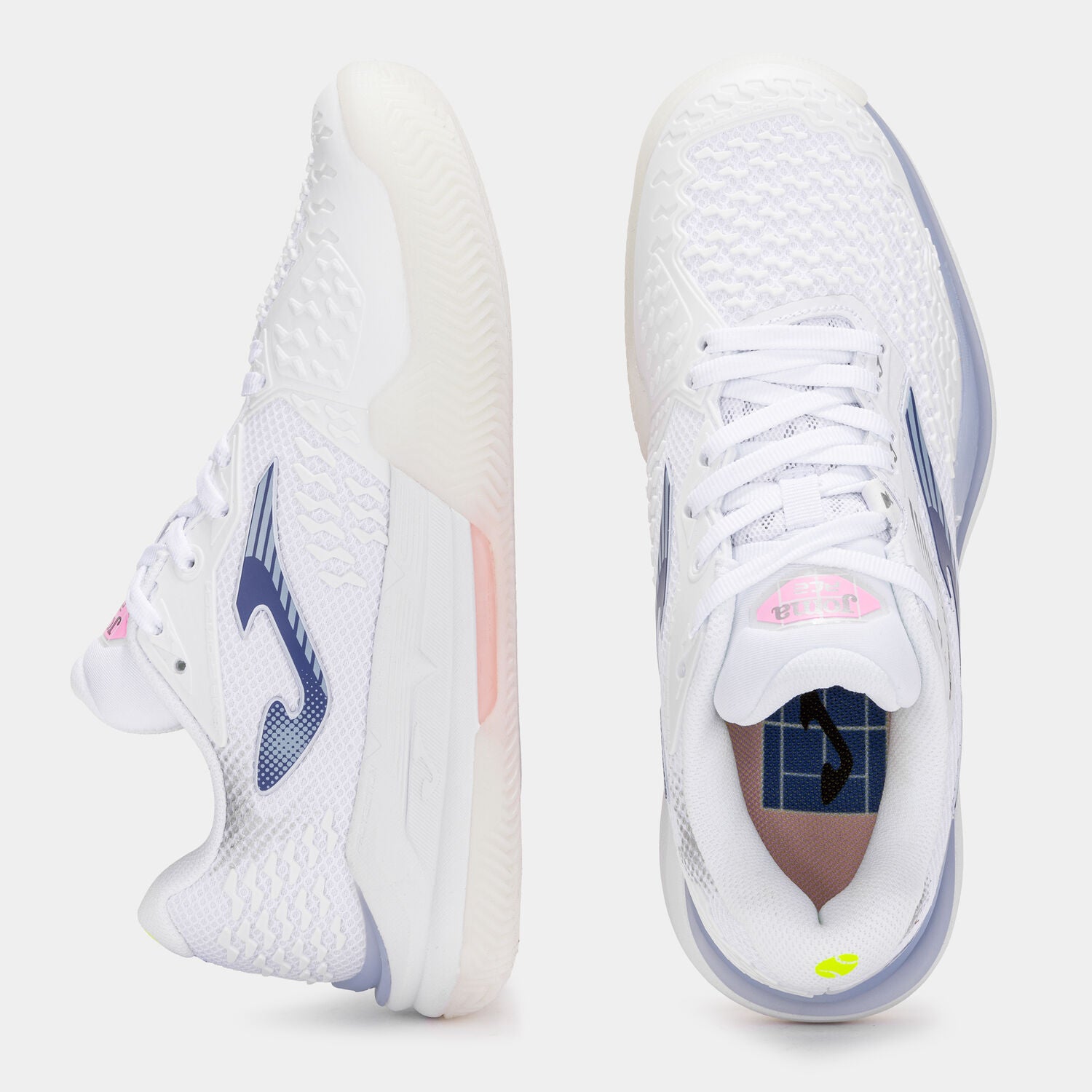 Elite padel shoes designed for comfort, stability, and performance. Breathable mesh upper with Joma Sportech fit, PROTECTION reinforced zones, and Phylon midsole with Carbon Stabilizer for torsion control. Durability clay sole ensures grip and controlled slides on clay courts.